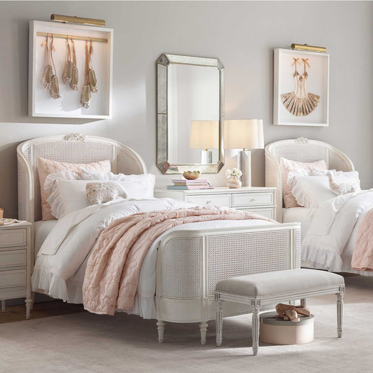 فكر في المواد التي يسهل صيانتها ولكنها فاخرة في نفس الوقت. بالنسبة لسريرك الكبير أو سرير الملكة أو سرير مزدوج أو سرير توأم، فكر في لوحة الألوان - فالألوان المحايدة تخلق الهدوء، بينما تضيف الأنماط الجريئة المرح، مثل تلك الموجودة في أغطية أسرة الأطفال.