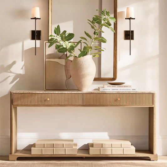 طاولات الكونسول هي قطع متعددة الاستخدامات يمكنها تعزيز ديكور أي غرفة. في دبي والإمارات العربية المتحدة، تعد التصميمات الأنيقة والبسيطة رائجة. في أبو ظبي والمملكة العربية السعودية، تحظى الأنماط المزخرفة والتقليدية بشعبية. يمكن وضع طاولات الكونسول في الممرات أو غرف المعيشة أو غرف النوم. تتميز أحدث الاتجاهات في قطر والمملكة العربية السعودية بألوان جريئة ومواد مختلطة. في IONS DESIGN، نقدم مجموعة واسعة من طاولات الكونسول التي تلبي مختلف الأذواق والديكورات الداخلية. سواء كنت في دبي أو أبو ظبي أو في أي مكان في الإمارات العربية المتحدة، فإن طاولات الكونسول لدينا تضيف لمسة من الأناقة إلى مساحتك.