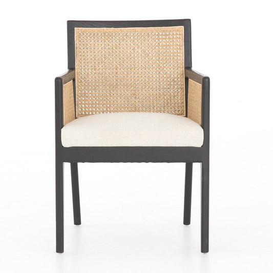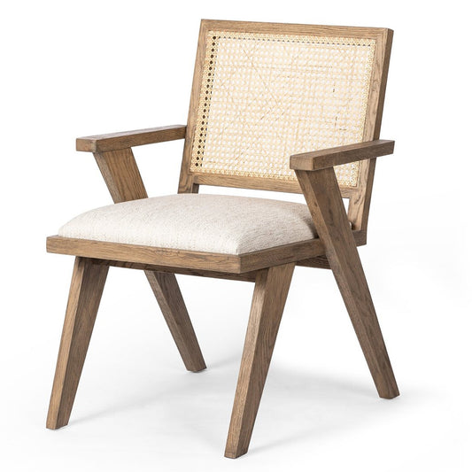 كرسي طعام بظهر قصب روز مع مسند للذراعين