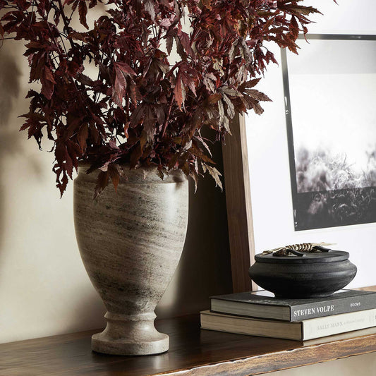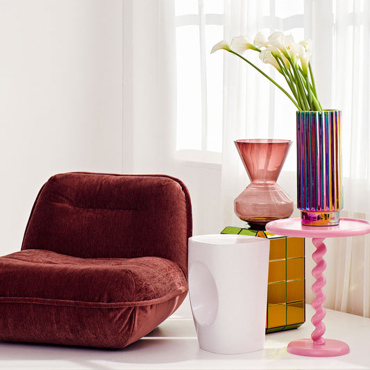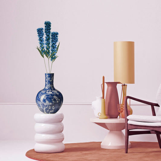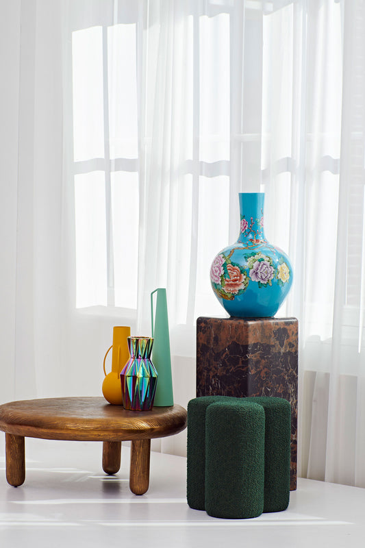Match your interior design space with the perfect Vase style from IONS collection . The color and materiel of the vase will blend in harmony with the other furniture elements of your rooms. Dining room vase selection could be inline with the dining chair fabric or dining table marble top finish. In living room a bold vase color selection could be your centerpiece . Or in your bedroom , the perfect place for your daily flowers selections. Vases work perfectly in Hallways and lobby areas too when selected style and proportion match you interior design theme .