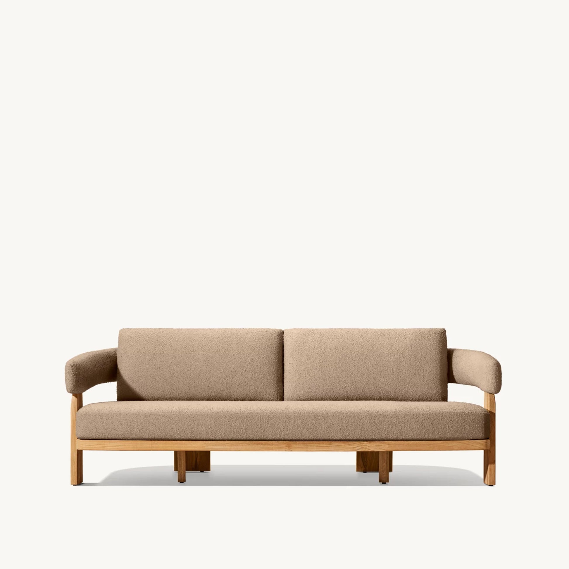 The Kia Wood Sofa is a minimalist yet elegant piece of furniture, featuring a wooden frame and plush cushions. Its clean design includes rounded and large, comfy back cushions, making it a versatile addition to living rooms, cozy reading nooks and even outdoor areas like gardens and patios. Pair it with a chic coffee table, a textured rug, or some vibrant throw pillows to elevate its aesthetic. This sofa blends functionality with style, offering a timeless look that complements various interior designs. The Kia Wood Sofa is perfect for creating a warm and inviting interior.