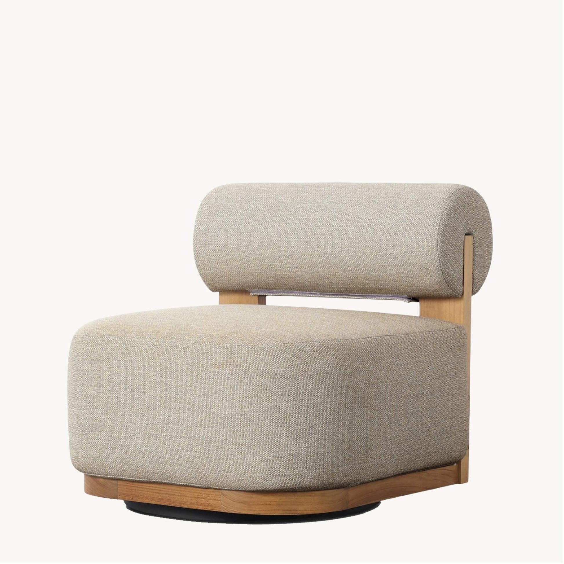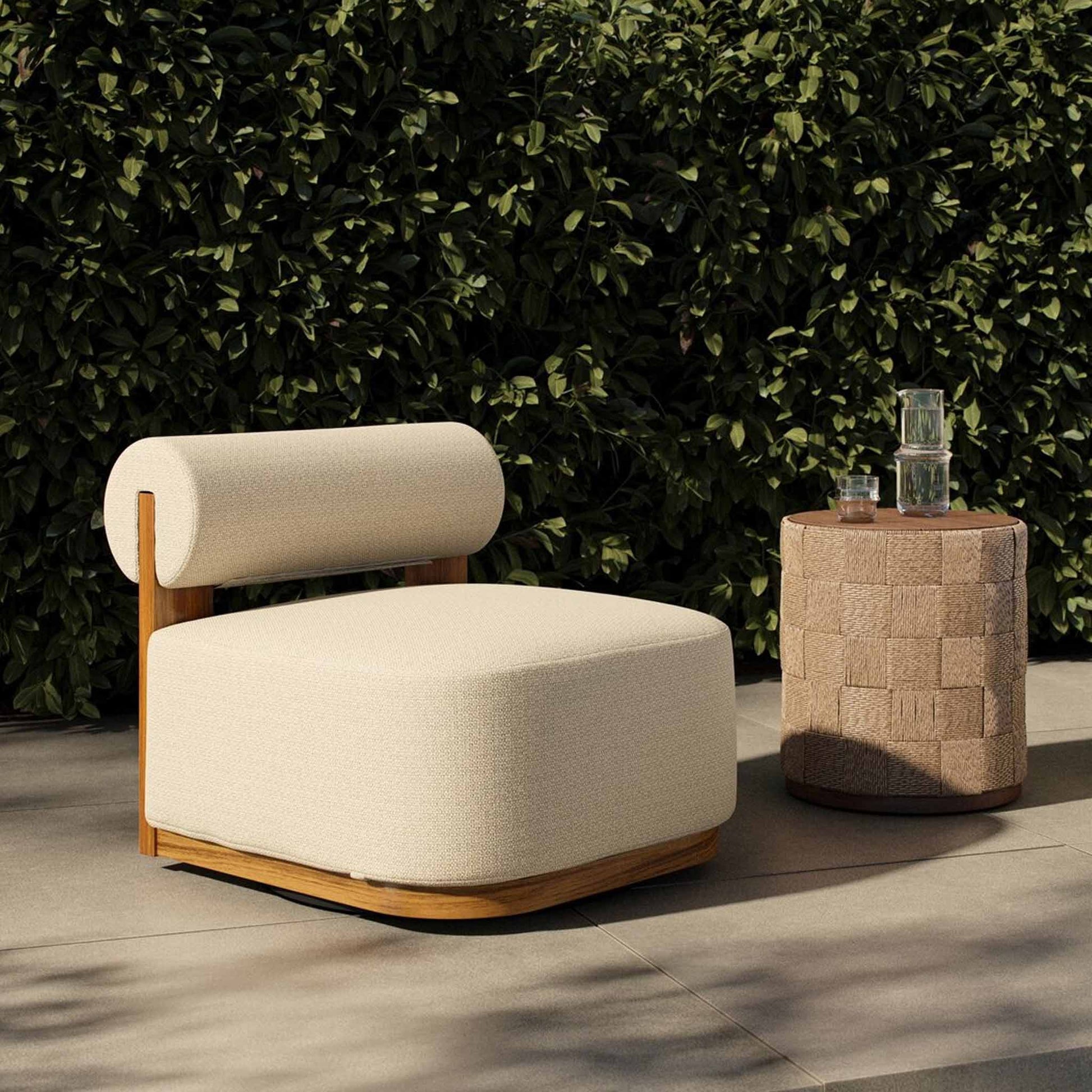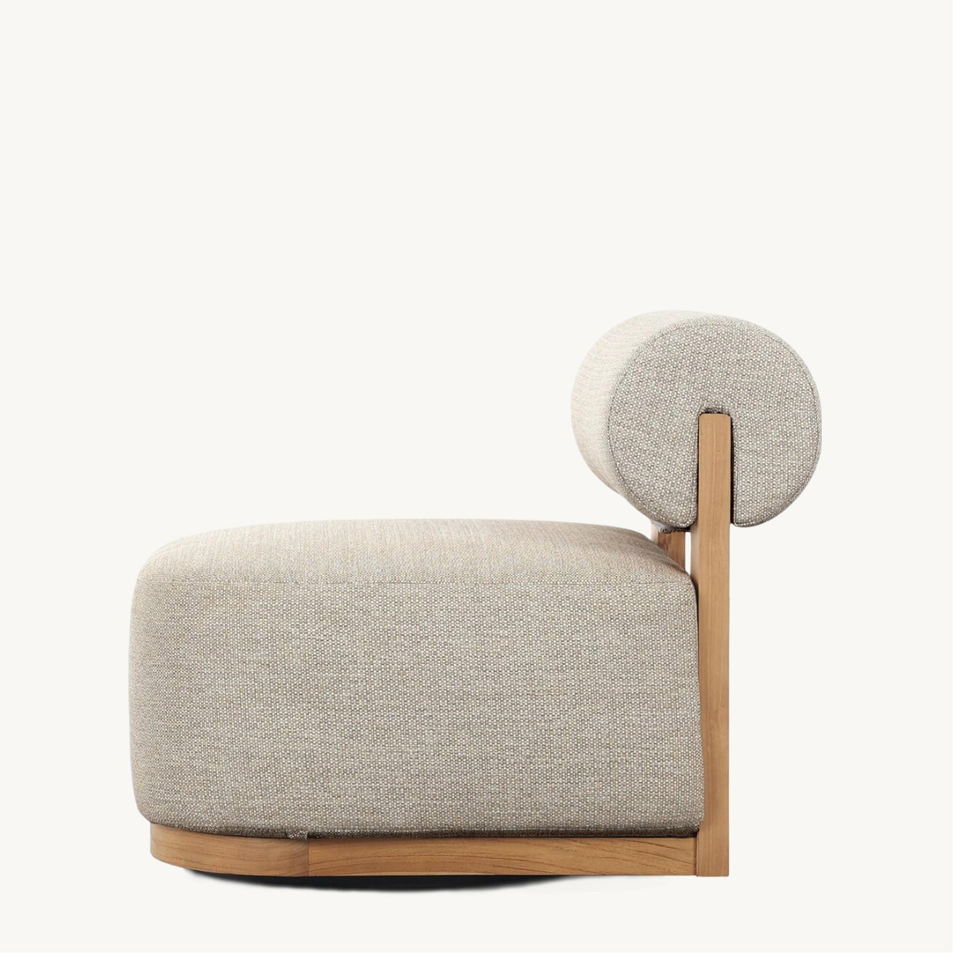 Upgrade your home with the Maf Swivel Chair, designed for both indoor and outdoor use. Featuring a rounded seat and backrest upholstered in light beige fabric, it pairs a minimalist design with premium functionality. Its sturdy wooden frame atop a 360-swivel base ensures durability while adding a modern touch to any setting. Perfect for living rooms, patios, home offices, or garden lounges, the Maf Swivel Chair is a statement seating. Crafted for comfort and elegance, it complements modern and contemporary furniture, making it a must-have for any villas that value both coziness and aesthetic appeal.