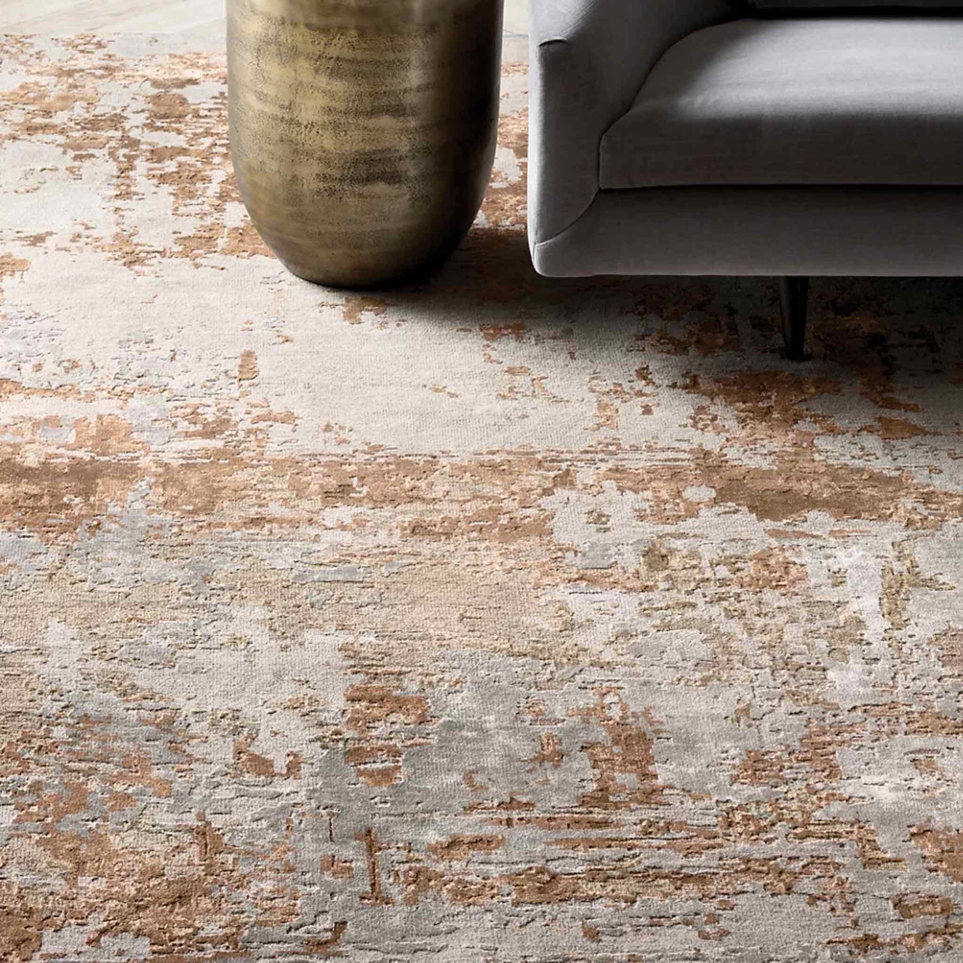 Enhance your home with Rug Dubai, a masterpiece of artful abstract and timeless craftsmanship. Hand-knotted from viscose and wool, it features randomly erased patterns where earthy colors merge and diverge, creating a dynamic visual flow. The blend of matte wool and lustrous viscose adds rich, textured depth, making it ideal for living rooms, bedrooms, or stylish lounges. Whether complementing modern sofas, chic table, or contemporary furniture, Rug Dubai brings an artistic touch of refinement to any interior. Experience the perfect balance of heritage-inspired design and contemporary allure.