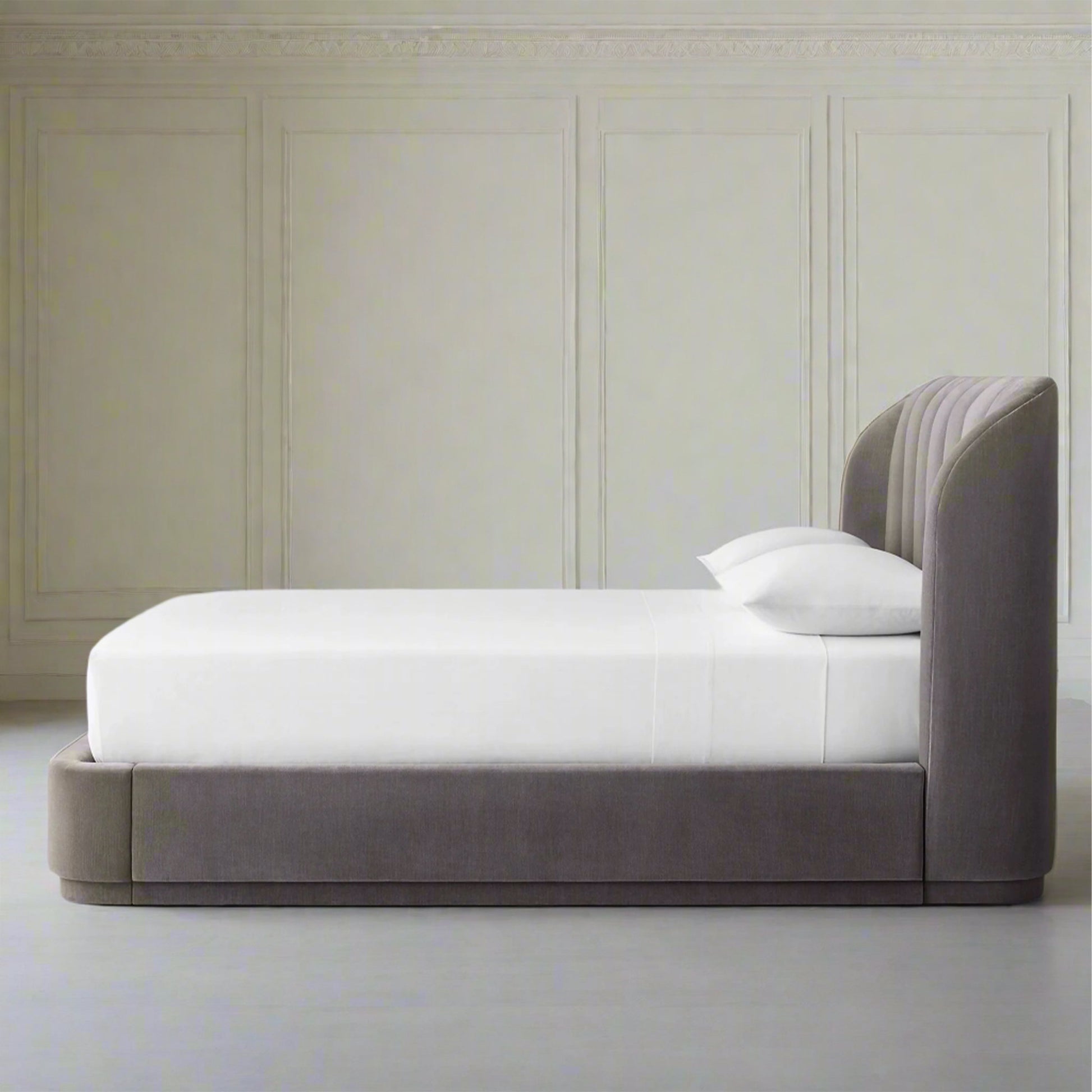 The Vin Grey Bed is a stylish and modern addition to any bedroom. Crafted with sleek grey upholstered fabric, this bed features a plush, padded headboard with vertical channel tufting, adding a touch of elegance and comfort. The neutral grey color complements various decor styles, making it versatile for different interior designs. The bed's sturdy frame ensures durability, while the low-profile design adds a contemporary feel. Perfect for a master bedroom or guest room, the Vin Grey Bed pairs well with minimalist furniture, soft lighting, and cozy textiles, creating a serene and inviting space.